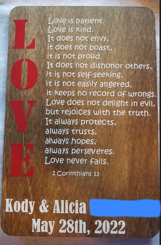 We can make personalized items for weddings & anniversaries. Contact Us